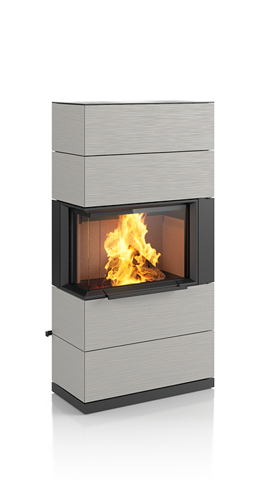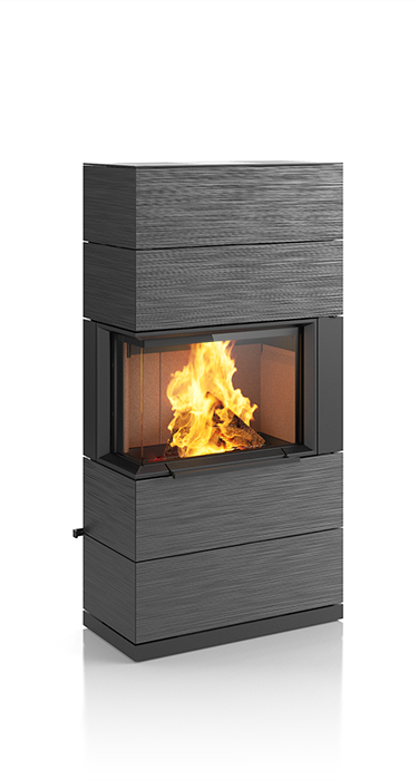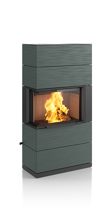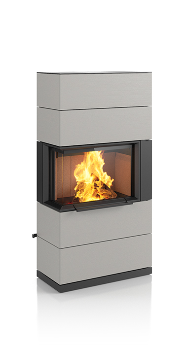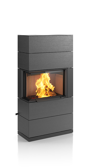 Plenty of room for the beautiful dancing flames. That makes the impressive PADUA a very unique stove. Its sophisticated design concept includes a sliding door that conveniently and easily opens upwards. The matching shelf system not only provides plenty of space to store wood, it can also be used for side connections to the chimney flue. The handcrafted ceramic in elegant textures and selected colours enhance the exclusive appearance of this special stove. Upon request, the PADUA can be equipped with a heat-retaining block. It is available in two heights.