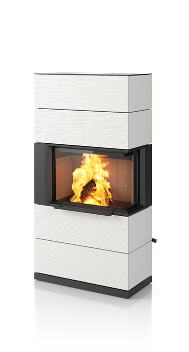 Plenty of room for the beautiful dancing flames. That makes the impressive PADUA a very unique stove. Its sophisticated design concept includes a sliding door that conveniently and easily opens upwards. The matching shelf system not only provides plenty of space to store wood, it can also be used for side connections to the chimney flue. The handcrafted ceramic in elegant textures and selected colours enhance the exclusive appearance of this special stove. Upon request, the PADUA can be equipped with a heat-retaining block. It is available in two heights.